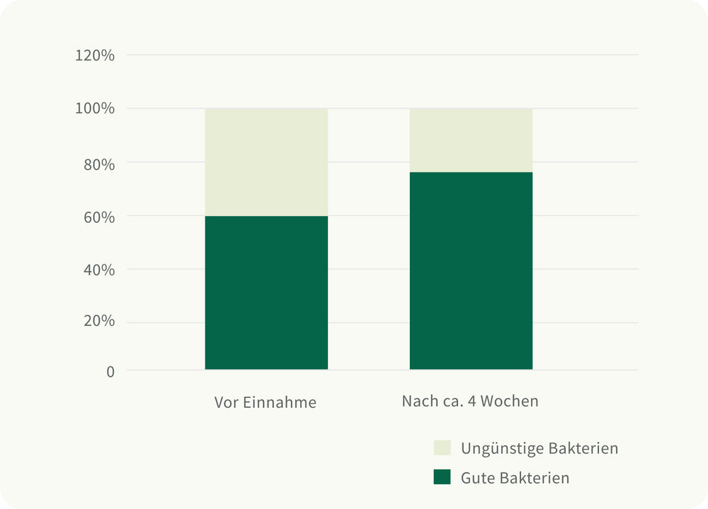 Mit der Zeit spürst Du, wie sich Dein Wohlbefinden stabilisiert: ein angenehmeres Bauchgefühl, mehr Leichtigkeit im Alltag und eine gestärkte innere Balance. Dein gutes Bauchgefühl kehrt zurück.